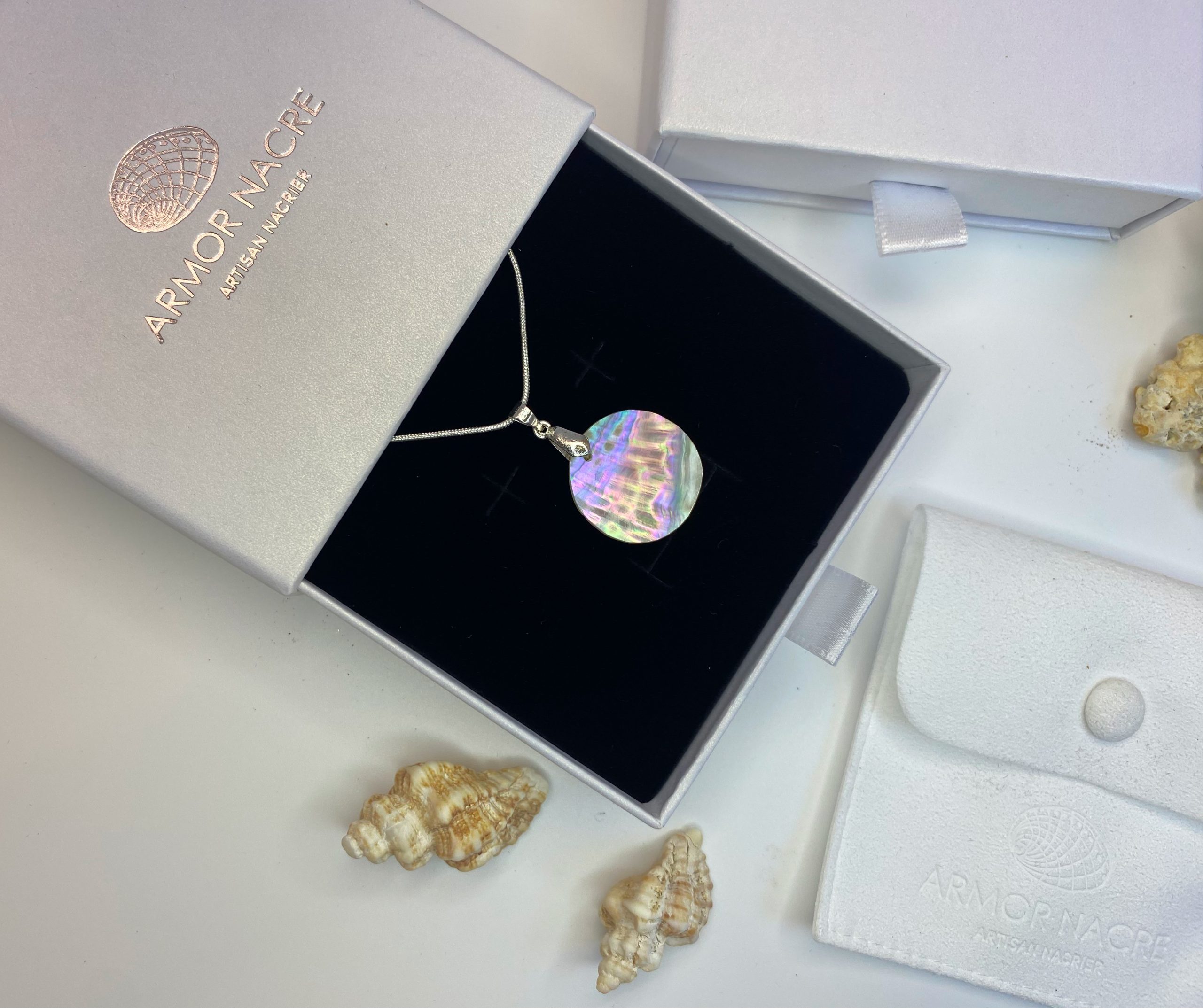 Médaille en nacre d’ormeau breton – Collier argent 925 – Bijou artisanal élégant et poétique